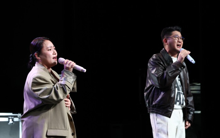 [서울=뉴스핌] 최지환 기자 = 어반자카파 멤버 조현아, 권순일, 박용인이 3일 오후 서울 강남구 일지아트홀에서 열린 어반자카파 신규 EP앨범 'STAY' 발매 쇼케이스에서 무대를 선보이고 있다. 2025.11.03 choipix16@newspim.com