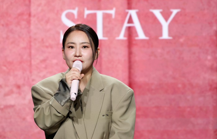 [서울=뉴스핌] 최지환 기자 = 어반자카파 멤버 조현아가 3일 오후 서울 강남구 일지아트홀에서 열린 어반자카파 신규 EP앨범 'STAY' 발매 쇼케이스에서 앨범을 소개하고 있다. 2025.11.03 choipix16@newspim.com