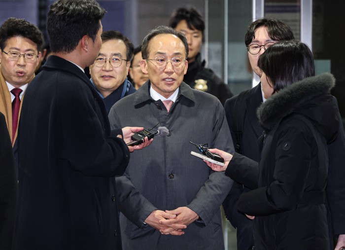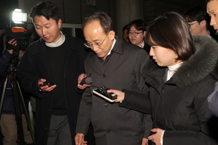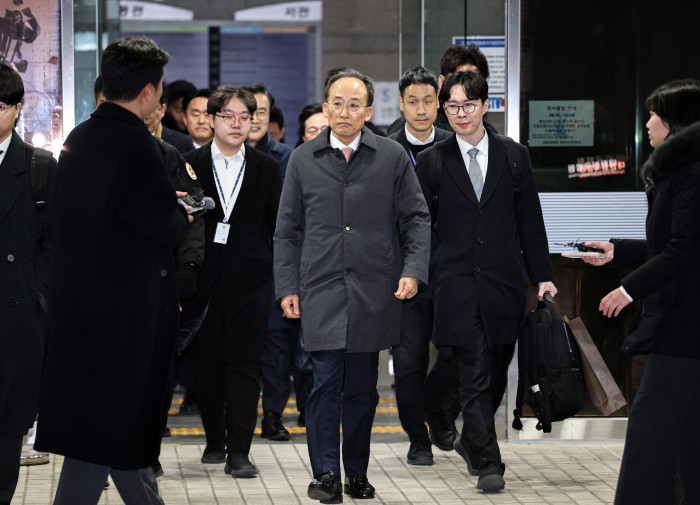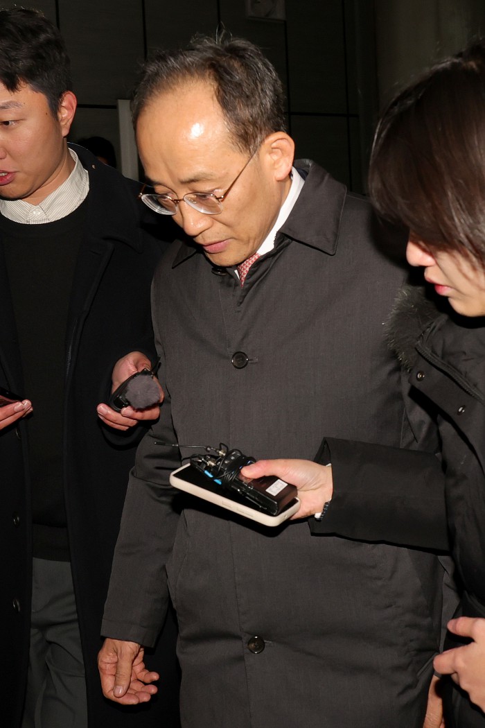 [서울=뉴스핌] 최지환 기자 = 국회의 12·3 비상계엄 해제 의결 방해 의혹을 받는 추경호 전 국민의힘 원내대표가 3일 새벽 서울 서초구 서울중앙지방법원에서 열린 영장실질심사(구속 전 피의자 심문)를 마치고 법정을 나서고 있다. 2025.12.03 choipix16@newspim.com